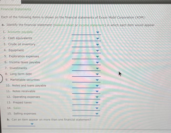 Solved Financial Statements Each Of The Following Items I Chegg Com