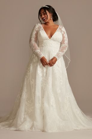 Lace Long Sleeve Open Back Plus Size Wedding Dress David S Bridal