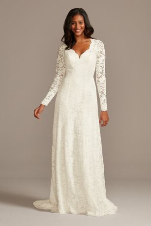 Scalloped Lace Long Sleeve Open Back Wedding Dress David S Bridal