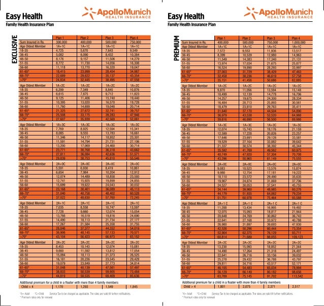 Apollo Munich Health Insurance Easy Health Insurance Family Rate Card