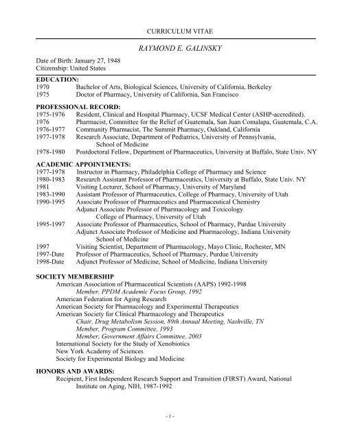 Raymond E Galinsky Purdue College Of Pharmacy Purdue University
