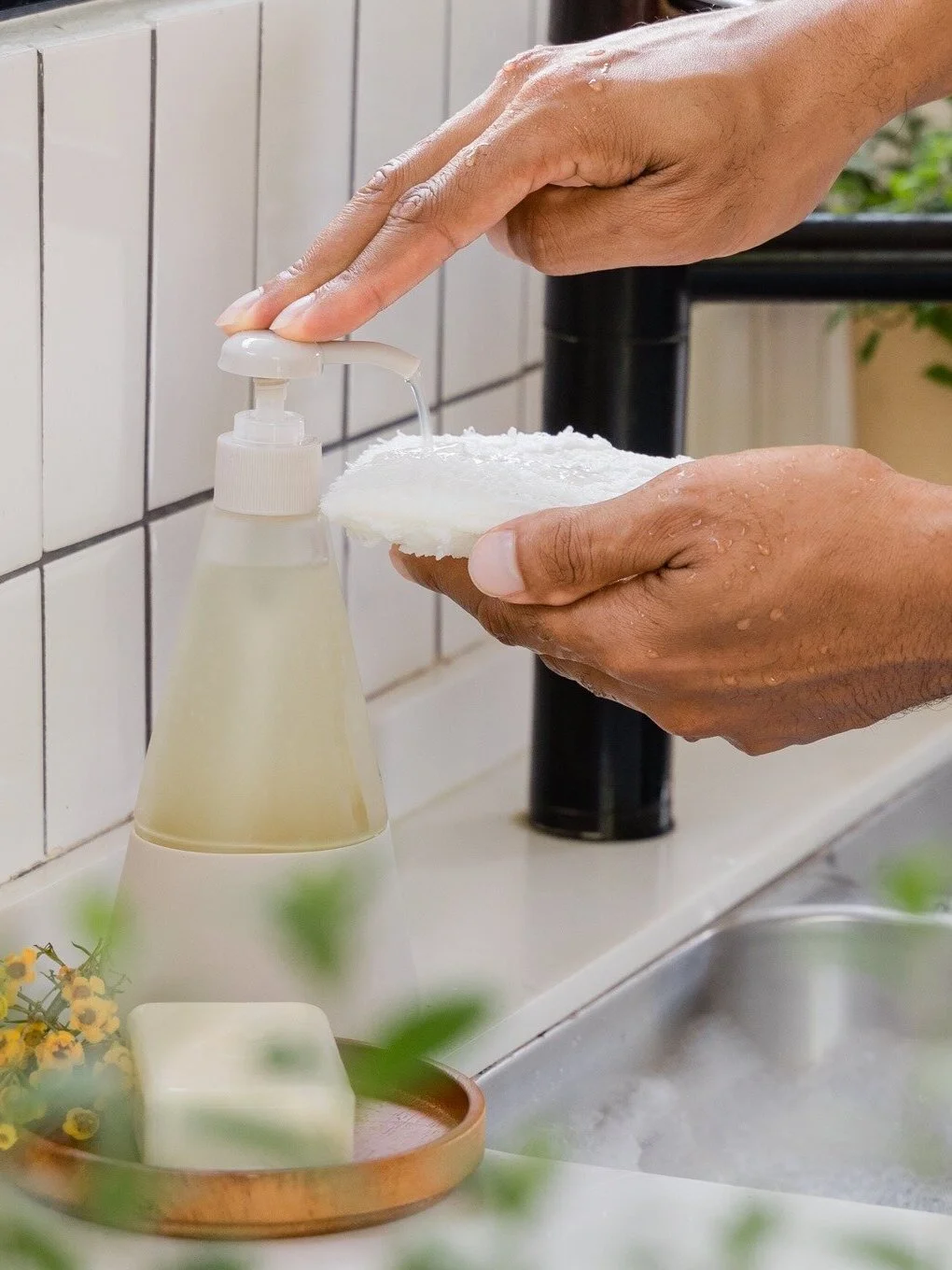 Reusable Produce Bags Organic Cotton - Set of 9 2497. Dish Soap Concentrate Worlds first Plastic-Free LIQUID Dish Soap. A dish soap dispenser for your kitchen sinks is the perfect way to store dish soap in a convenient location.