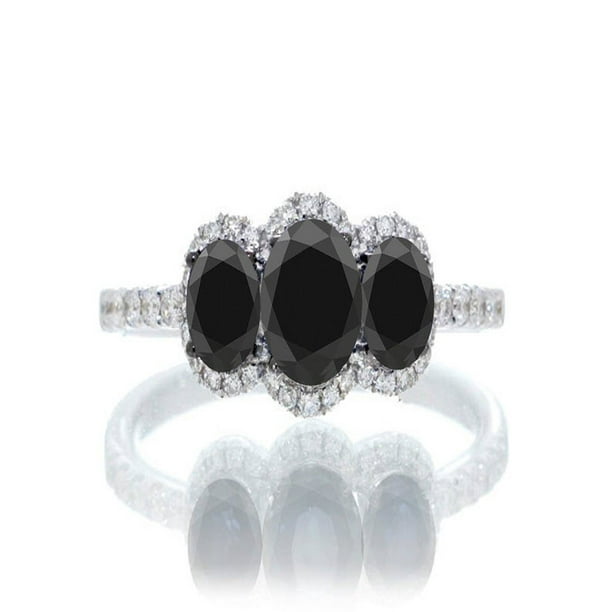 Jeenjewels 2 Carat Oval Cut Three Stone Trilong Black Diamond Engagement Ring On 10k White Gold Walmart Com Walmart Com