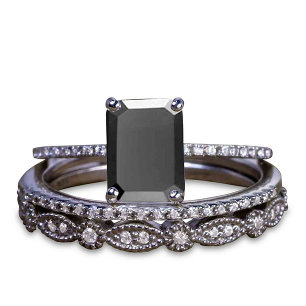 Jeenmata 2 Carat Emerald Cut Black Diamond 3pcs Wedding Ring Set For Her Engagement Ring 10k Black Gold Walmart Com Walmart Com
