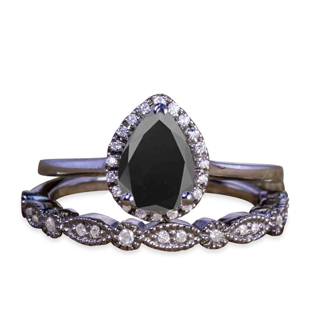 Jeenmata 1 50 Carat Teardrop Genuine Black Diamond Engagement Ring With Antique Ring Band 10k Black Gold Walmart Com Walmart Com