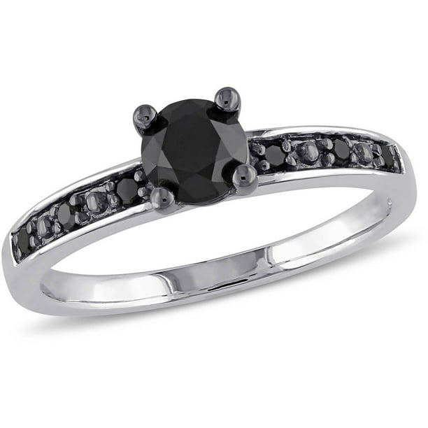 Miabella 1 Carat T W Black Diamond Sterling Silver Engagement Ring Walmart Com Walmart Com