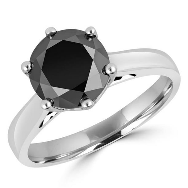 Majesty Diamonds Md170223 9 0 87 Ct Round Black Diamond 6 Prong Solitaire Engagement Ring In 14k White Gold Size 9 Walmart Com Walmart Com