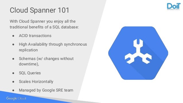 What is google cloud spanner. What is Google Cloud SQL. As I was trying to read and learn about Cloud Spanner I realized a need for a short Overview of Cloud Spanner. It provides key features such as global transactions strongly consistent reads and automatic multi-site replication and failover.