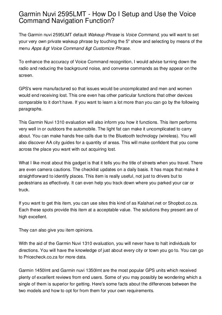 Tips for Speaking to the Device Launching Garmin Voice-Activated Navigation. Then it started working again. Voice command allows you to use your device by saying words and commands.