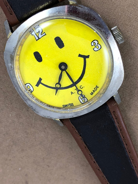 Vintage Original Swiss Made Smiley Face Watch By Atc American Time Companies