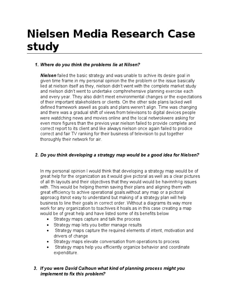 NIELSEN MEDIA RESEARCH 1. Nielsen conducted live monitoring of branded assets during US. Our case study focus is primarily to illustrate the importance of planning in achieving organisational goals with reference to Nielsen Corporations media research units NMR business situation.