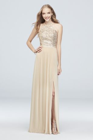 Open Back Sequin And Mesh Bridesmaid Dress David S Bridal